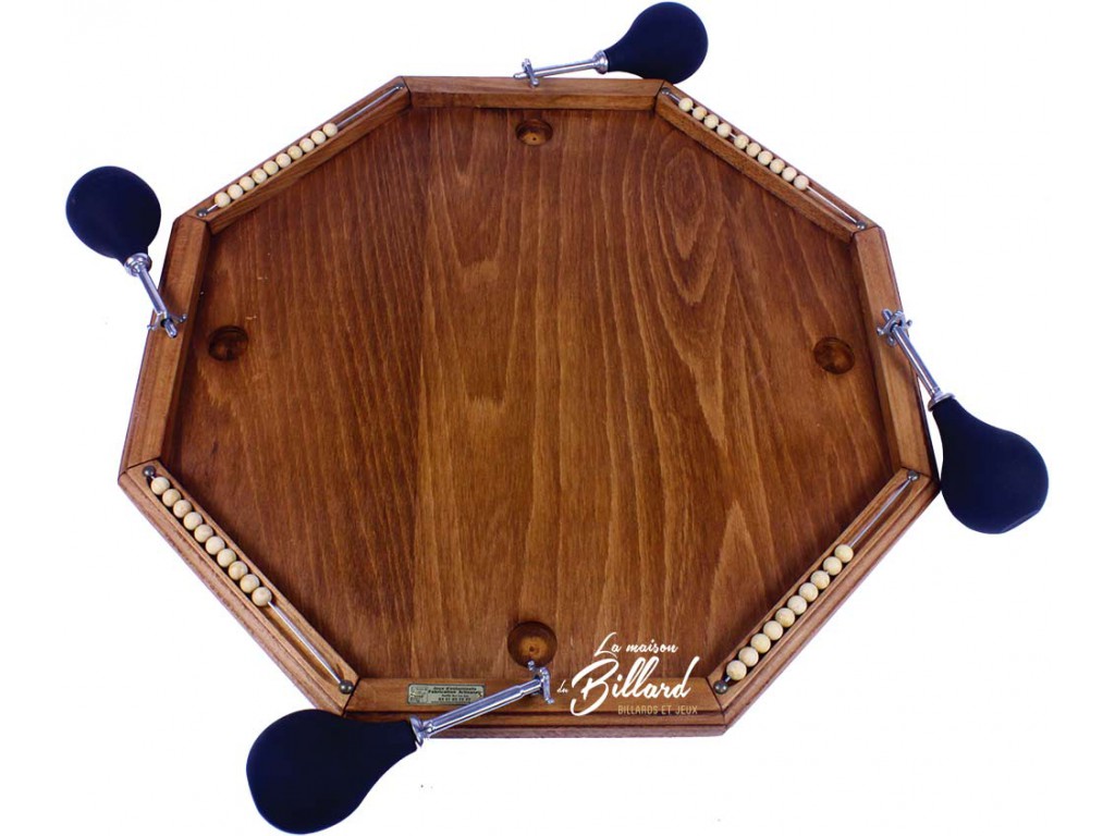 Celui-ci lance alors la bille sur le jeu et la partie continue. Le marqueur comptabilise les points perdants. Le gagnant est celui qui aura engrangé le moins de points. Les joueurs au nombre de 4 ou moins se placent autour du jeu et prennent en main l’une des poires qu’il placent dans la lyre qui pivote dans son logement. Il est interdit de souffler avec la bouche et de bouger le billard Nicolas au moment du jeu pour dévier la balle.